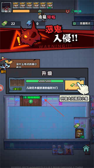 3、恶鬼即将入侵,点击大门,花费15金币来升级大门,加强大门的坚固程度来应对恶鬼。