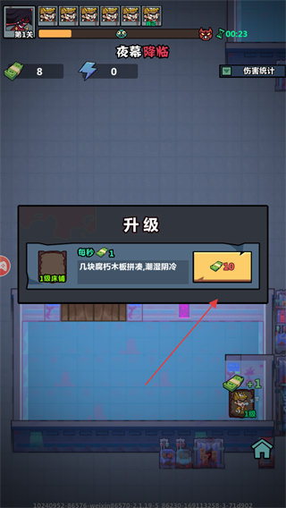 2、通关在床上躺平获取每秒收益,点击床铺可以花费10金币升级床,可提升每秒收益和属性。