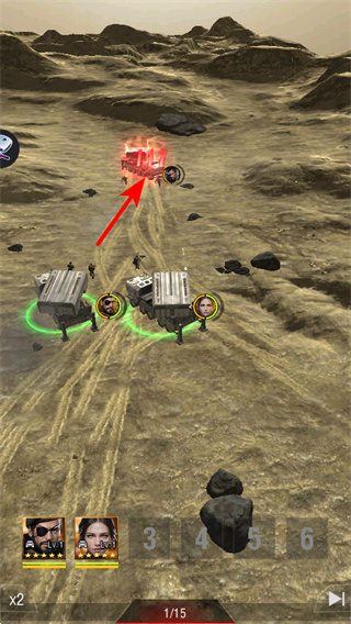 2、点击敌方单位如红色车辆,可指挥己方部队发起攻击,这是推进战斗的核心操作,攻击时需关注敌我战力差距。