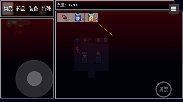 3、再次点击确定按键,会弹出选项框,点击使用罐头食品可以恢复活力值缓解饥饿状态。