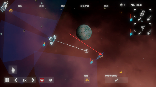 4、根据战略需求调整舰队配置,持续与敌方作战,积累信用点以升级舰队。