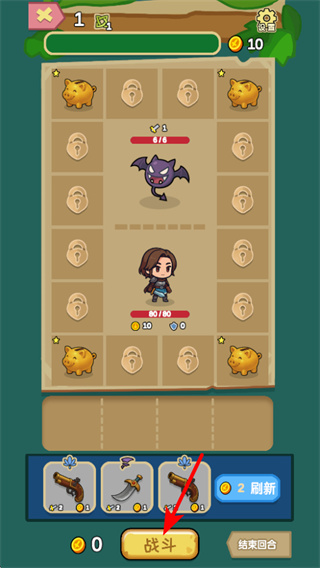 2、进入关卡后,选好武器后点击战斗按钮,即可触发与当前敌人的对战,完成这一步推进对局进程。