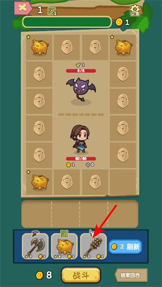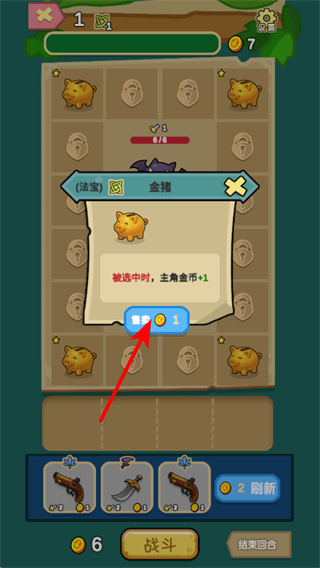 3、遇到金猪类道具时,点击确定按钮选中它,被选中后可为主角增加1点生命值,助力后续战斗。
