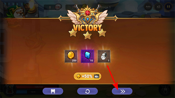 4、关卡胜利后,点击继续按钮可进入下一关,继续前需关注获得的奖励如金币、钻石,为后续关卡做好资源积累。
