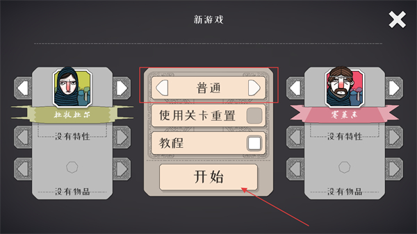 2、在界面可选择角色,将难度调整为普通,勾选教程选项后点击开始,完成初始设置并进入游戏。