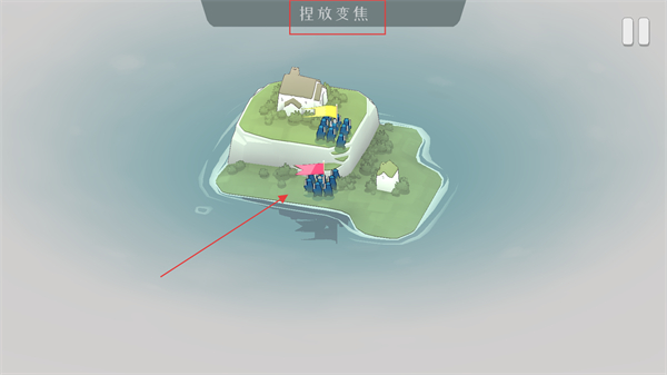 4、通过捏放屏幕可实现视角变焦,拉近或拉远画面,既能观察防御区域的细节,也能掌握岛屿的全局布局。