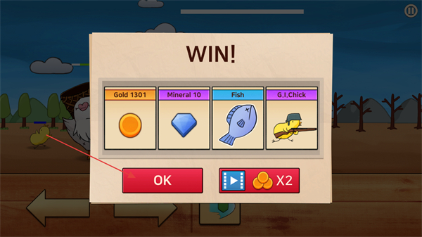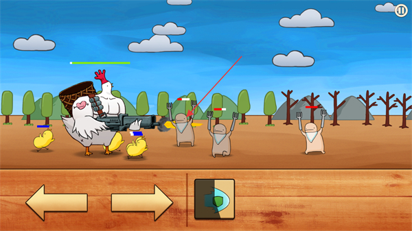 3、通过持枪鸡自动攻击敌方,搭配召唤的小鸡助力,击败敌方单位以推进关卡直至胜利。