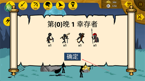 1、在每晚开始前,确认拥有的士兵类型如剑士、矛士、弓箭手、盾兵,点击确定进入战斗。