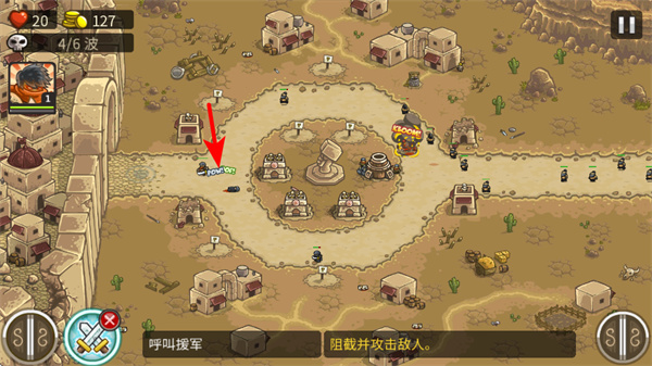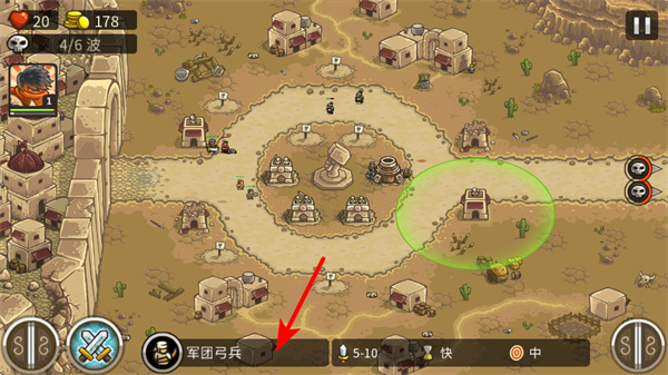 3、点击如军团弓兵之类的援军图标,可召唤士兵参战,这是增强防御力量的关键操作,召唤时需根据敌人类型选择合适的兵种。