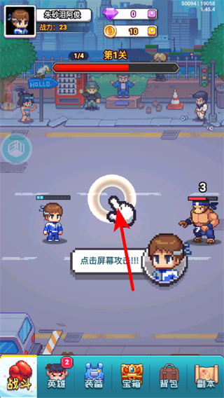 1、进入关卡后,按照提示点击屏幕触发攻击操作,这是战斗的核心方式,点击可对敌人造成伤害,击败目标。