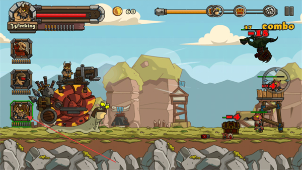 设置角色骑行蜗牛进行策略攻防的主题设定打破常规,独特主题搭配精美画面,既能吸引注意力,又能区别于传统射击游戏的体验。