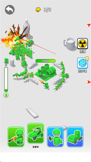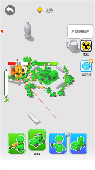 3、战斗中,部队自动与敌方交战,可点击使用核弹,对敌方造成大范围伤害。