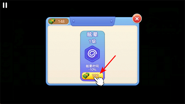 3、在技能升级界面点击消耗资源的按钮可升级技能,如升级眩晕技能能提升战斗效果。