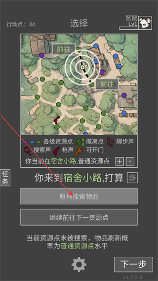 3、进入战局后需要做出打算,是原地搜索资源点还是前往下一个资源点进行对战。