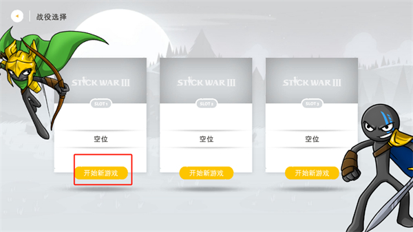 3、屏幕之中会显示三个不同的空位,玩家可以按照自己的喜好来进行选择,点击对应空位下的“开始新游戏”按钮即可占位;