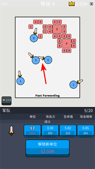 3、升级到新等级后,地图数字和难度会提升,需及时提升单位等级和数量,应对时需关注新等级地图数字分布单位战力。