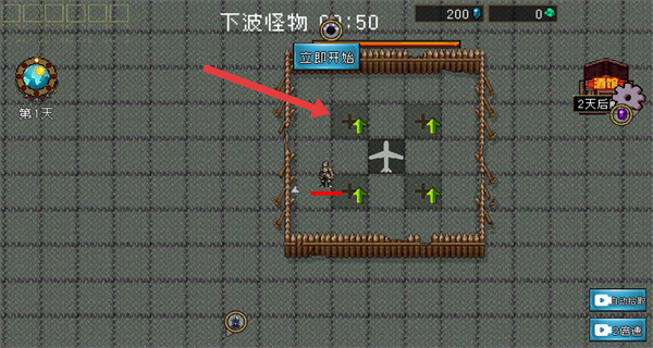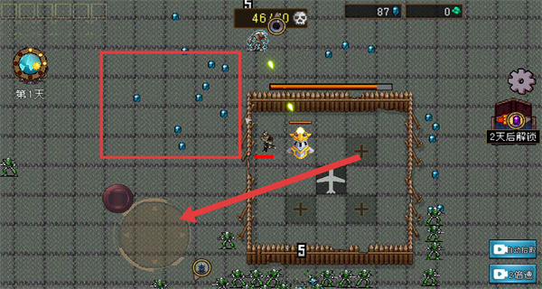 4、在开始后,可通过左下角的虚拟摇杆控制角色移动,收集掉落资源并躲避怪物。