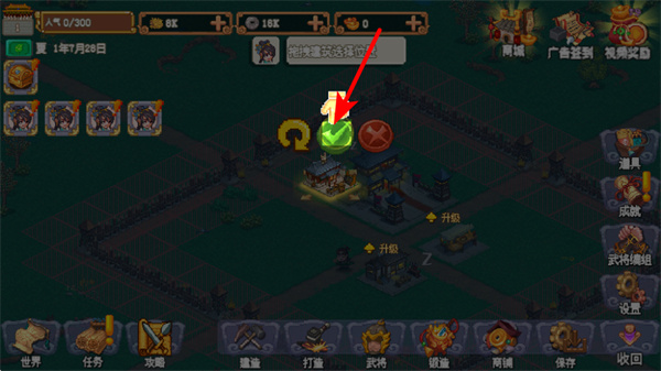 3、建筑建造完成后,点击绿色的确认按钮,这是完成建筑放置的操作,点击后建筑将固定在当前区域。