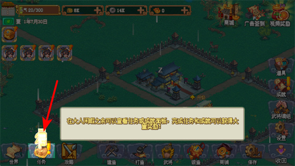 4、游戏过程中点击任务按钮,这是查看任务的入口,完成任务可获取大量奖励助力游戏进程推进。