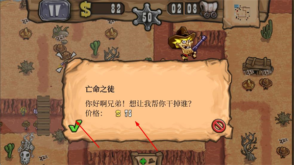 3、消耗金币雇佣帮手如亡命之徒,花费75金币,增强战斗力量,助力冒险。