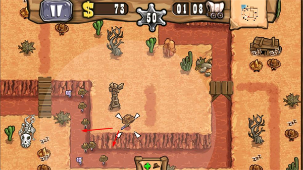 以西部大盗的反派视角展开玩法,打破传统防御游戏的常规设定,让体验者感受与众不同的角色立场,在攻击路过目标的过程中,体会身为大盗的独特乐趣。
