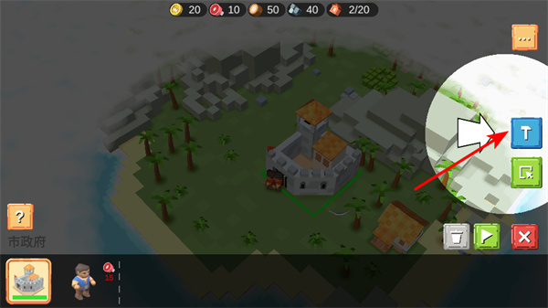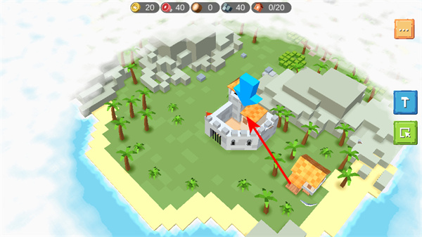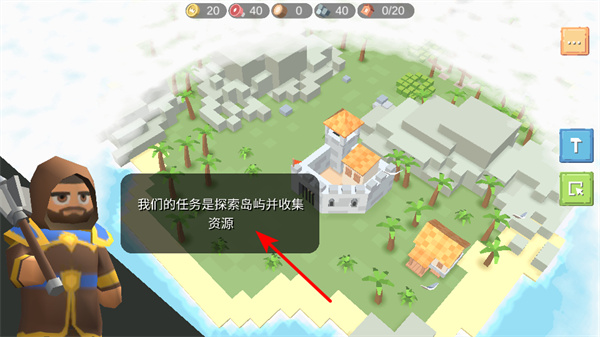 4、点击右侧T按钮,可开启相关功能界面,如建筑编辑、资源管理等,利用该功能优化岛屿的建设和资源利用,推动游戏进程。