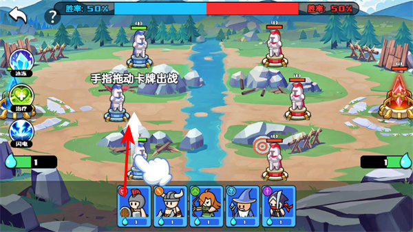 2、部署卡牌,卡牌部署是构建防线的核心步骤,部署后可在战场布置不同兵种的卡牌,形成攻防体系以对抗敌方。