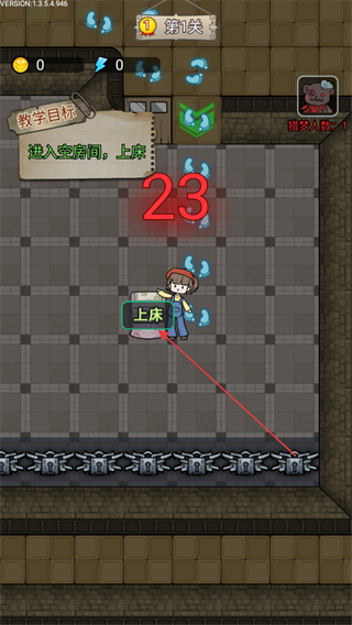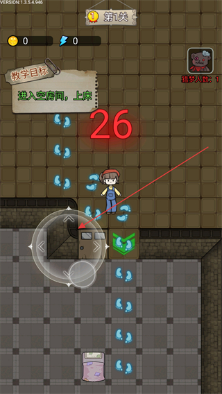 1、进入关卡对局内,滑动屏幕任意位置都可以操控角色移动,寻找安全的房间。