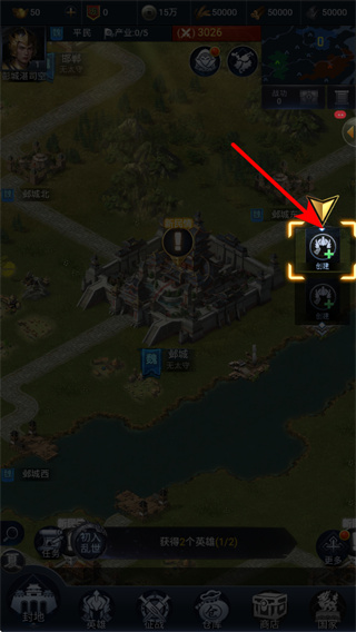 2、进入城池界面后,点击武将标识可打开部队管理界面,这是组建作战军队的核心操作,不同武将对应不同兵种,能提升部队的作战适配性。