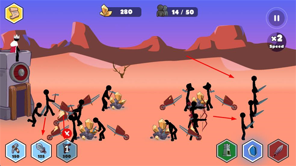 火柴人战争帝国战争mod菜单是一款以火柴人为角色的战略战争类游戏,让玩家随时体验战争策略的乐趣,玩家可制定巧妙战略,指挥多元军队攻击并摧毁敌方基地,灵活运用各类魔法强化团队战力,完成任务获取丰厚奖励以购买道具,掌握不同武器与战斗方式,凭借战术扭转战局,感受运筹帷幄的对战魅力。