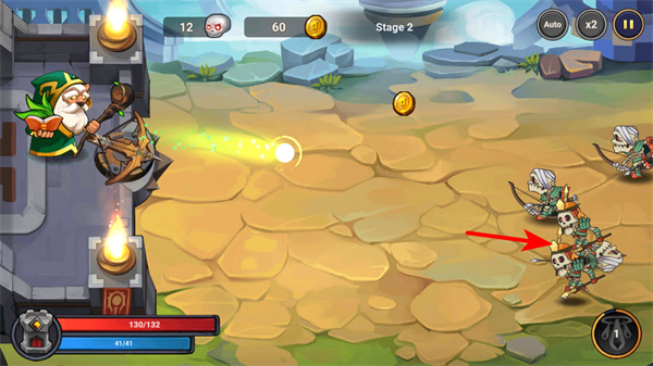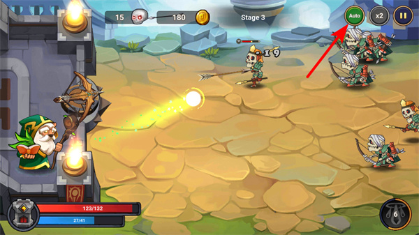 4、开启Auto自动战斗功能,可自动攻击敌人积累金币,确保自动战斗的攻击效率,建筑升级提供充足资源。