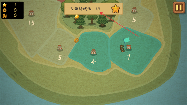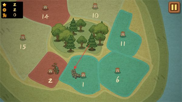 3、在地图中显示己方士兵所处区域,通过调配士兵可推进区域占领,进而完成关卡的挑战目标。