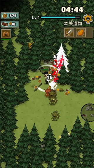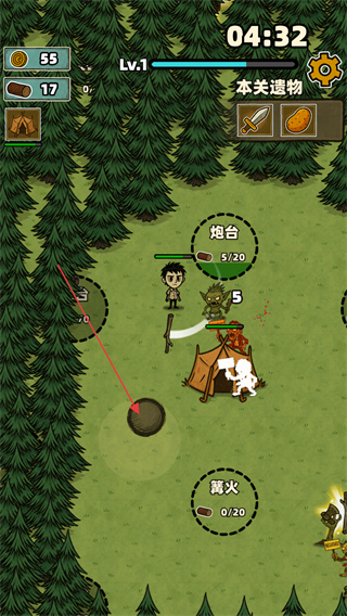 3、关卡内借助炮台攻击敌方,留意篝火资源量,通过滑动屏幕控制角色移动击败怪物获道具,同时收集本关遗物以推进关卡进度。