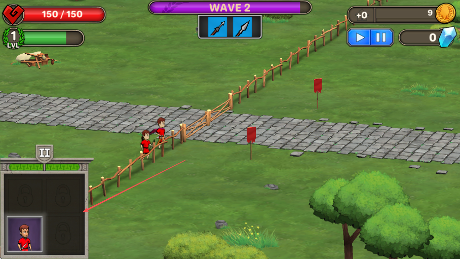 3、依据箭头指向,让红方士兵在栅栏处布防,准备迎接第二波敌人。