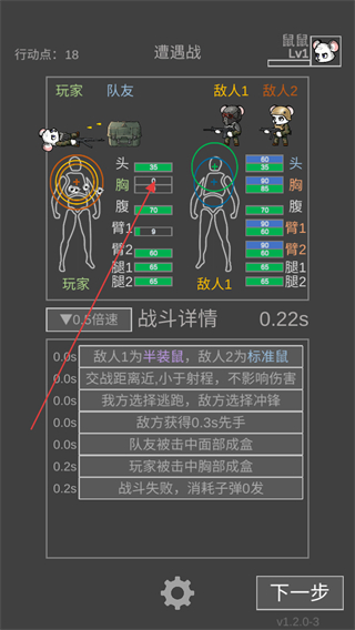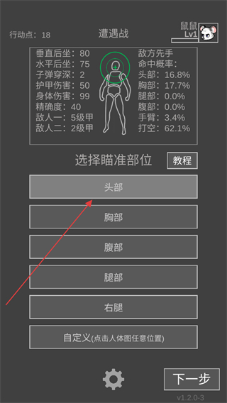 2、进入战斗后,需要选择瞄准部位,根据先后手的原则选择攻击方式。