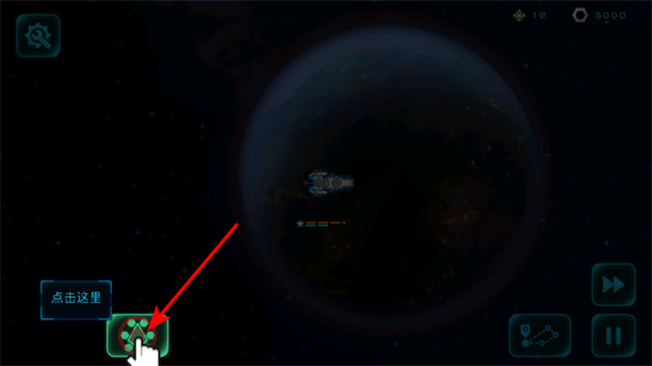 3、遇到点击这里提示的功能按钮时,准确点击可触发飞船操作如技能释放、功能激活,需根据提示及时响应,保障推进。