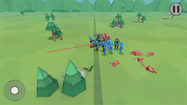 2、蓝色士兵追击敌方残兵,逐步清理战场剩余的黑色单位。