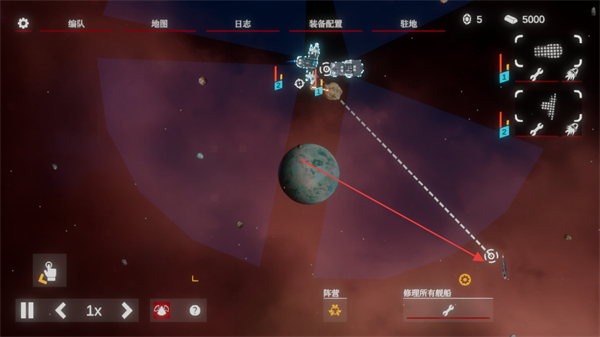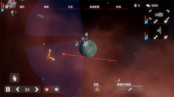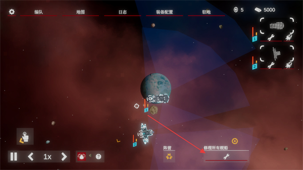1、点击修理所有舰船按钮,修复己方舰船,提升作战能力。