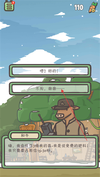 1、在树屋场景中,互动下方的和牛NPC,触发对话选项。