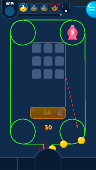 3、布置防御后,拦截黄色彩弹,获得$1奖励,同时提升敌人数量至10。