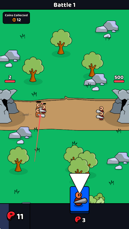 4、观察战场局势,指挥战士攻击敌人,收集CoinsCollected显示的金币,获取资源并赢得战斗胜利。