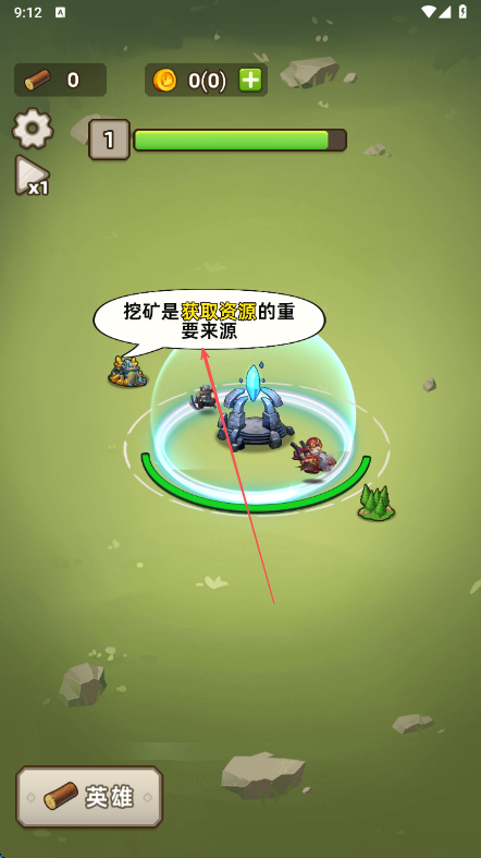 1、进入游戏后,了解挖矿是获取资源的重要来源,通过挖矿积累木材和金币资源。