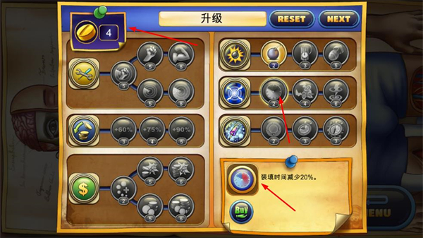 4、进入升级界面,消耗金币提升技能,强化防御塔能力,为下一轮战斗做好准备。