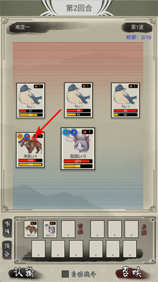 1、进入战斗部署界面后,点击下方布阵区域的异兽卡片,将其拖入战场部署,组建战斗阵容关键操作。