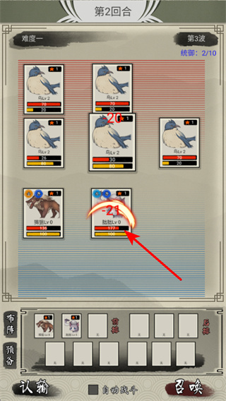 2、部署完成后,点击开始战斗按钮启动回合,战斗中需关注异兽血条与伤害数值,判断战力优劣。