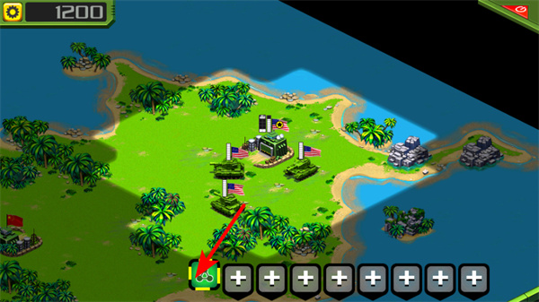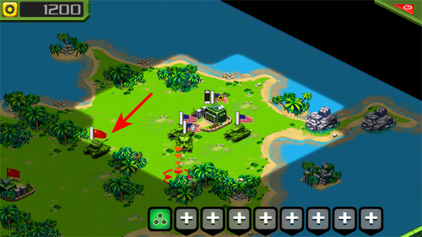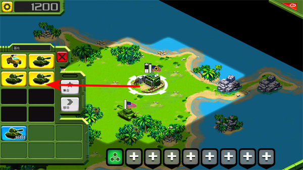 1、在军事策略游戏中,操控坦克部队按照箭头方向移动,进攻敌军阵地,通过走位布局,逐步推进占领敌方区域。
