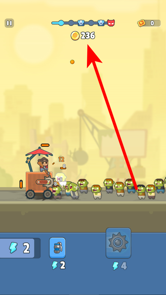 4、击败僵尸获取金币,成功击败僵尸后,能够获取金币,这些金币可用于后续载具进化、道具购买等,助力地在丧尸之城冒险。