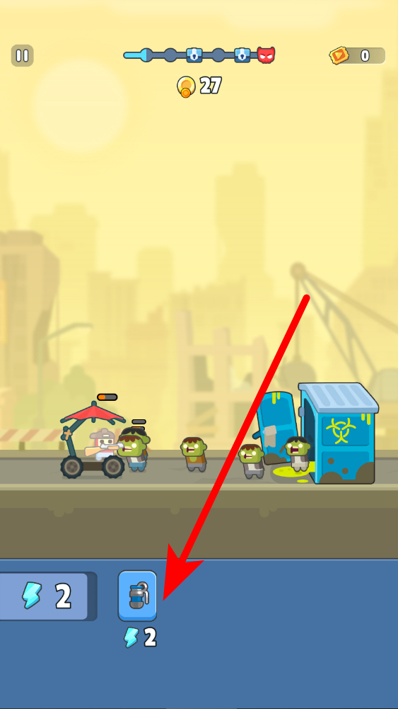 3、玩家可以使用道具助力战斗,在与僵尸战斗过程中,适时使用道具,借助道具的效果,更顺利地炸飞击败僵尸,推进冒险之旅。