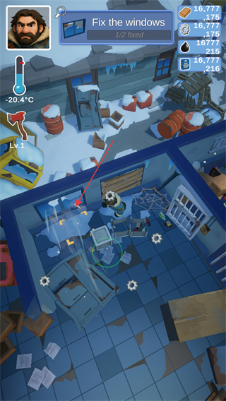 3、时刻注意左上角角色的体温环境,让庇护所保持在一个舒适的温度当中,寻找门窗进行封闭防止冷风吹进来。