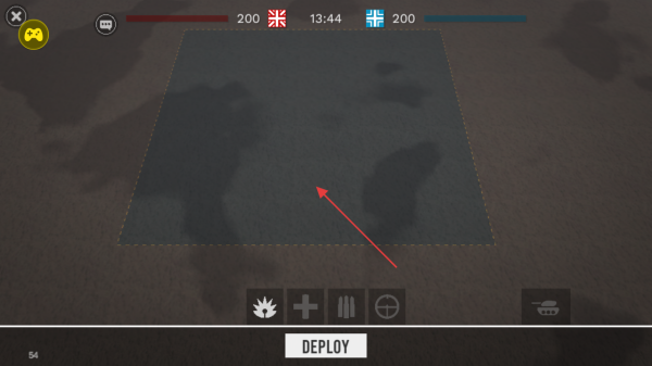 1、进入游戏,查看屏幕上方双方初始分数200和倒计时13:44,在区域内选择部署位置。
